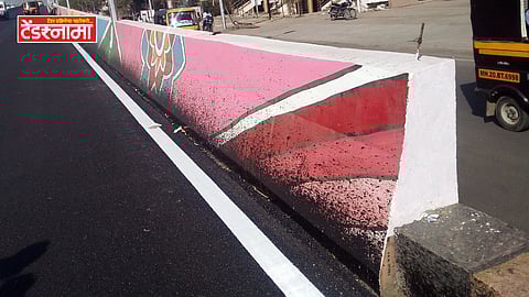 औरंगाबाद (Aurangabad) : शहरातील उड्डाणपुलांच्या कठड्यावर आणि दुभाजकात केलेल्या रंगरंगोटी आणि त्यावरील आकर्षक चिंत्रावर सरेआम काळे फासण्याचा उद्योग ठेकेदार (Contractor) जीएनआय इन्फ्रास्ट्रक्चर प्रा.लि. कंपनीने केला आहे. यात सार्वजनिक बांधकाम विभागाच्या (PWD) अधिकाऱ्यांनी दिलेल्या सूचनांना व वर्कऑर्डर मधील अटीशर्तीना कंपनीने तिलांजली दिल्याचा धक्कादायक प्रकार समोर आला आहे.