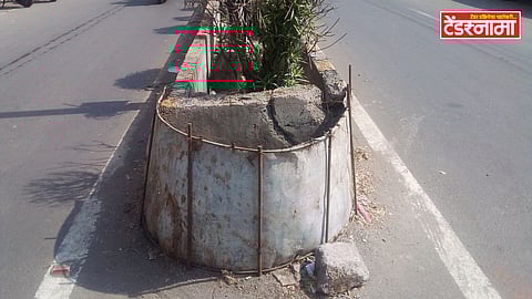 दुभाजक बांधकामानंतर महिन्याभरातच त्याचे लचके तूटल्याने कंत्राटदाराचा निकृष्ट कारभार उघड झाला. 'टेंडरनामा'च्या वृत्तानंतर त्याने एका ठिकाणी दुरूस्तीचे काम हाती घेतले. तूटलेल्या दुभाजकाची जोडाजोडी सुरू झाल्याने नागरिकांमध्ये समाधान पसरले होते. परंतु, तुटलेल्या दुभाजकात यू आकाराचा पत्रा जोडून कंत्राटदाराने जुगाड करत त्यात काॅंक्रीट न भरताच यंत्रणा पसार केली. आधीच केलेल्या कामाचा दर्जा चांगला नाही, त्यात अशा अर्धवट कामाने दुभाजक, यंत्रणानिर्मित खड्डे आणि दुभाजकातील कचऱ्यामुळे दीड कोटीच्या नव्या रस्त्याची शोभा मातीत मिळवल्याची नागरिकांमध्ये चर्चा आहे.