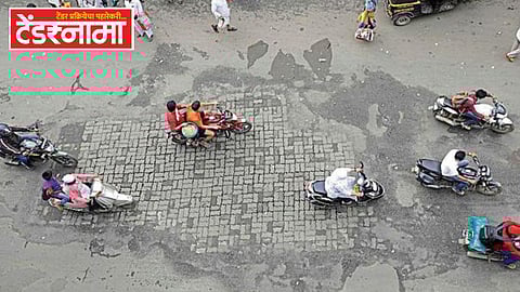 पुणे (Pune) : सिंहगड रस्त्यावर सुरू असलेल्या उड्डाण पुलाच्या कामामुळे मोठ्या प्रमाणात खड्डे पडले आहेत. खडी किंवा डांबराने खड्डे बुजत नसल्याने आता थेट पेव्हिंग ब्लॉकने खड्डे बुजविण्यात आले आहेत. रात्री वाहतूक कमी असताना खड्डे बुजविण्याचे काम केले जात आहे.